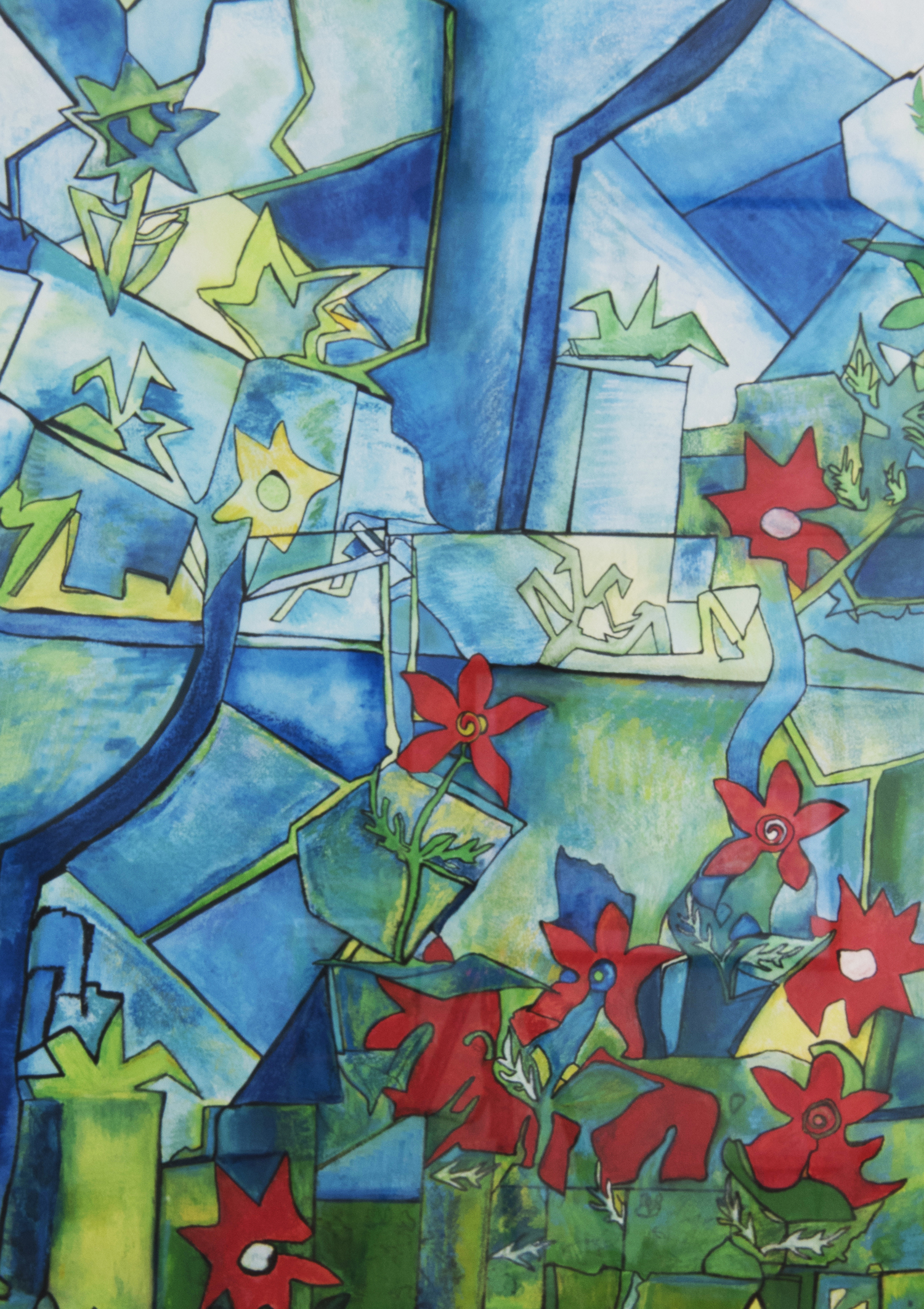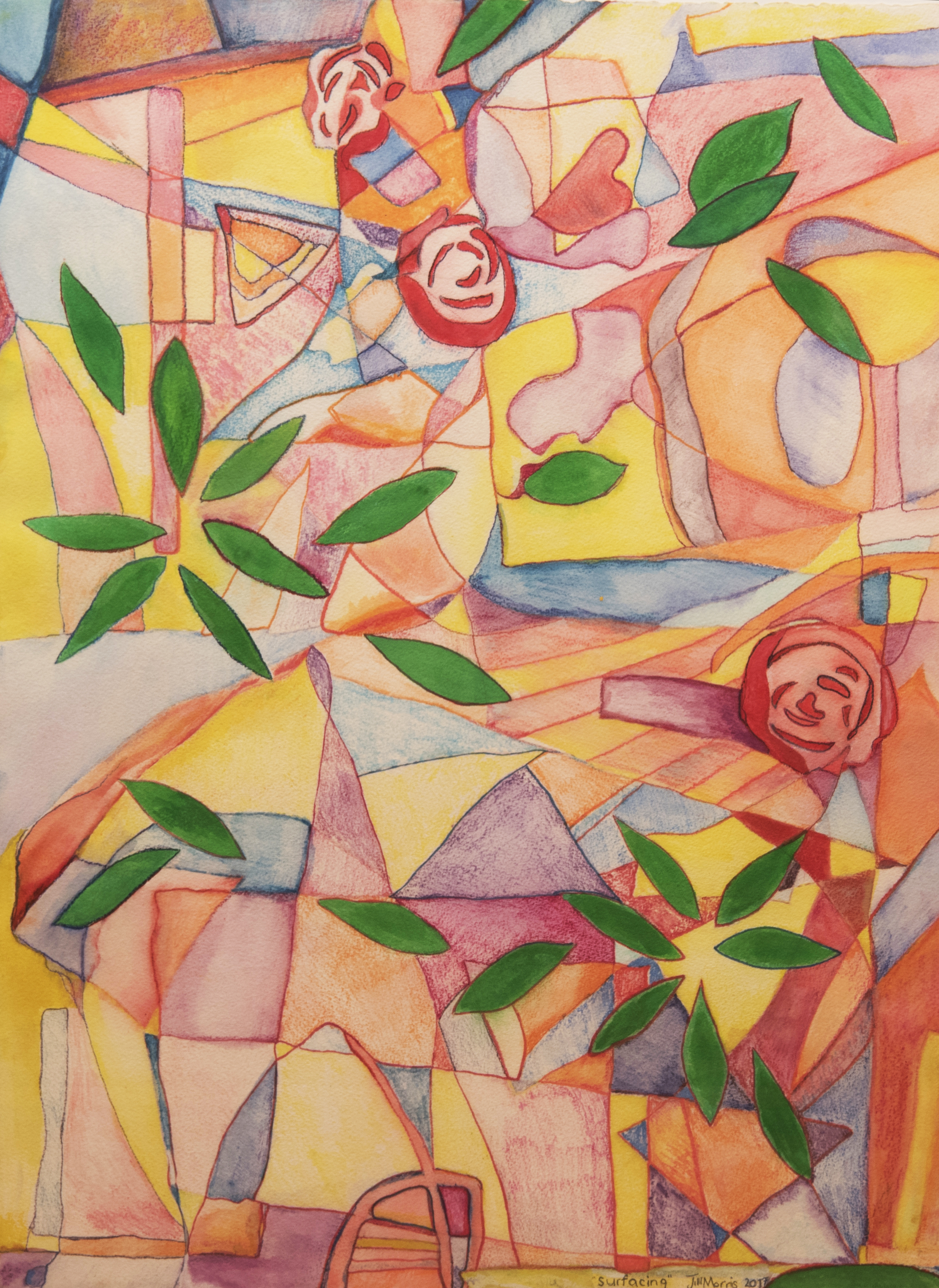 In my mixed media paintings, I reduce the formal elements to simple shapes,